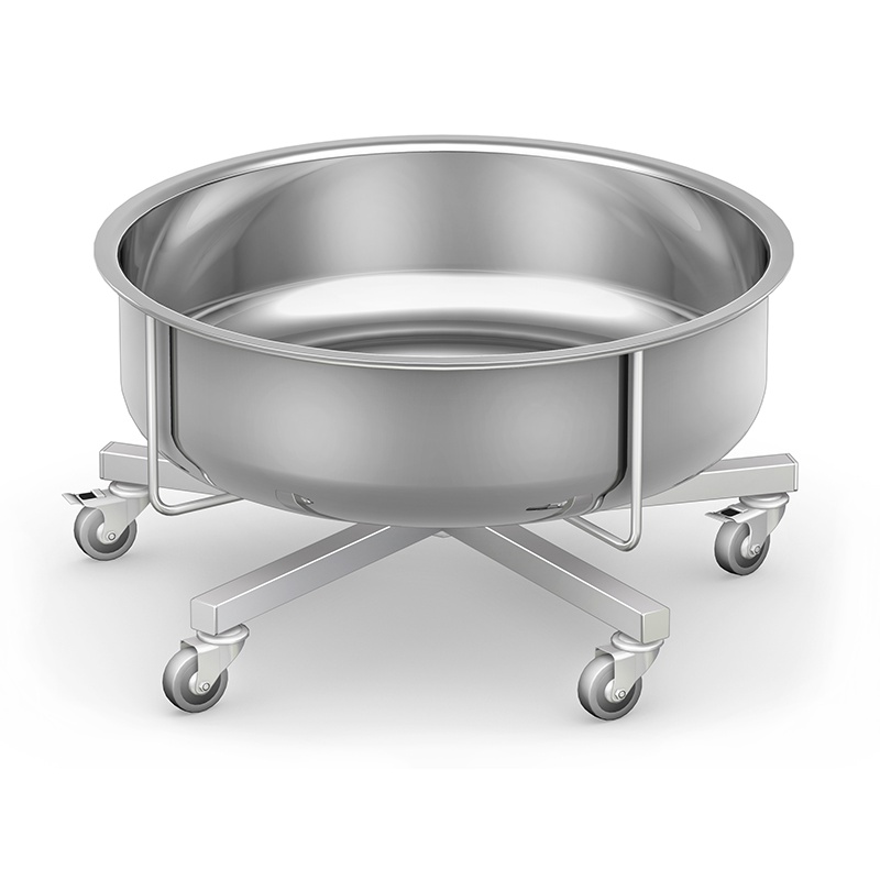 Stojak SMO-03 wykonano w całości ze stali kwasoodpornej gat. 0H18N9. Podstawa pięcioramienna wyposażona w koła o średnicy 50 mm.