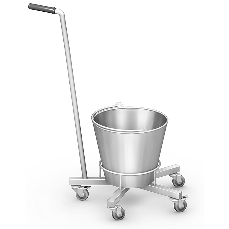 Wiadro na podstawie jezdnej SMO-05 z uchwytem ze stali nierdzewnej, podstawa stal kwasoodporna gat. 0H18N9.