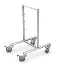 Wózki WKS wykonane w całości ze stali kwasoodpornej gat. 0H18N9, wyposażone w koła o średnicy 125 mm, w tym dwa z blokadą.
