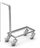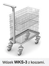 Wózki WKS wykonano w całości ze stali kwasoodpornej gat. 0H18N9, wyposażone w koła o średnicy 125 mm, w tym dwa z blokadą.
