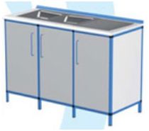 Meble medyczne ALUMED to nowoczesne i bardzo wytrzymałe meble, wykonane na bazie mocnej, ale lekkiej konstrukcji szkieletowej z profili aluminiowych. Profile pokryte są lakierem proszkowym na wybrany kolor wg palety RAL lub anodowane dla zachowania naturalnego koloru aluminium. Do wypełnienia szkieletu wykorzystano szeroką gamę kolorystyczną płyt laminiowych. Wszystkie elementy narożne, jak również konstrukcyjne posiadają zaokrąglone krawędzie chroniące użytkownika przed urazami. Zastosowane materiały nawiązują do najnowszych tendencji w światowym wzornictwie. Są estetyczne, trwałe i funkcjonalne. Szafki stojące serii ST-5 to szafki dwukomorowe o szerokości 134 cm i o różnej konfiguracji frontów w zależności od przeznaczenia. Seria szafek ST-5 może występować jako pojedyncza, wolnostojąca szafka lub w zestawie ze wspólnym blatem roboczym z szafkami np. z serii ST-2 i ST-3. Doskonale nadają się do wyposażenia gabinetów lekarskich, zabiegowych, aptek czy innych pomieszczeń medycznych. Istnieje możliwość wykonania szafek w innych wymiarach, na życzenie. Front: DRZWI PEŁNE. Wyposażenie: BLAT ROBOCZY Z LISTWĄ PRZYŚCIENNĄ, ZLEWOZMYWAK 2-KOMOROWY Z OCIEKACZEM ZE STALI NIERDZEWNEJ, 1 x KOMORA 1-DRZWIOWA, 1 x KOMORA 2-DRZWIOWA, 1 x PÓŁKA MEBLOWA W KOMORZE 1-DRZWIOWEJ, UCHWYTY DRZWIOWE, REGULOWANE NÓŻKI.
