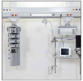 • Ciągi rur, gazów medycznych i przewody elektryczne umieszczone są w oddzielnych, izolowanych przedziałach rozmieszczonych pionowo.