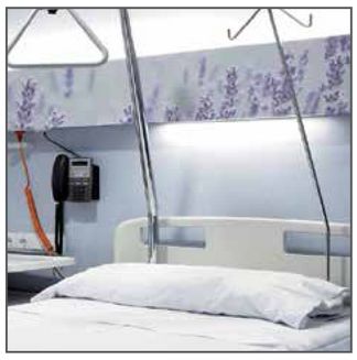 • Panel zbudowany z dwóch aluminiowych profili podzielonych na 3 przedziały elektryczne: przedział bezpośredniego i pośredniego oświetlenia oraz przedział gazów medycznych.