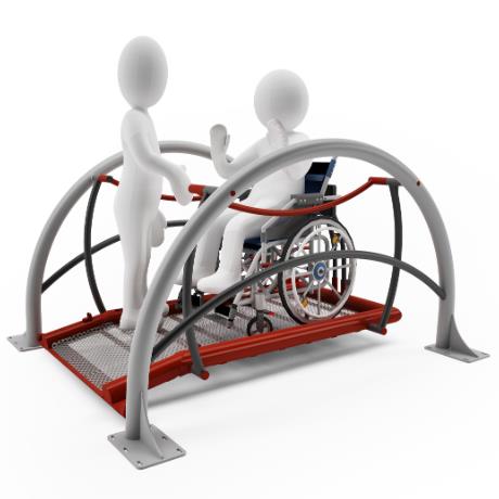 Najazd na podjazd zaleca się tyłem. Następnie po dojechaniu do oparcia należy zamontować pas zabezpieczający i wyhamować wózek. Kolejna czynność to podniesienie podjazdu przy pomocy dźwigni i tym samym zwolnienie huśtawki. Zabawa odbywa się poprzez odpychanie od relingów umieszczonych po obu stronach platformy. Oprócz huśtania, czynność wpływa również na wzmocnienie kończyn górnych. Zabawa może odbywać się samodzielnie lub z udziałem opiekuna. Z huśtawki mogą również korzystać dzieci pełnosprawne.