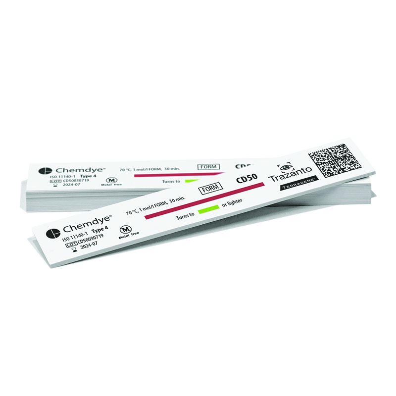 Wskaźnik chemiczny wielu zmiennych, paski z nadrukowanym tuszem wskaźnikowym (105 x 18 mm), do procesów sterylizacji formaldehydem.