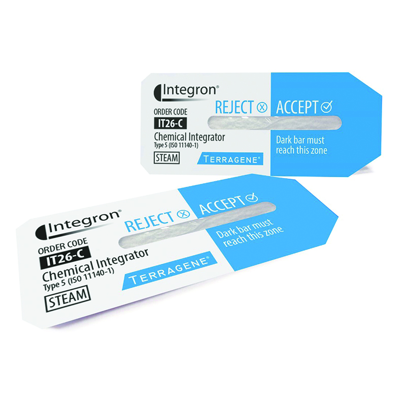Ruchomy przedni integrator do monitorowania procesów sterylizacji parą wodną w temperaturze od 118°C do 138°C.