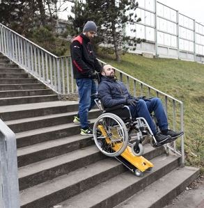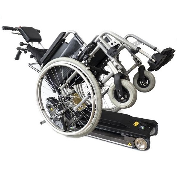 Jest to jeden z mniejszych oraz najbardziej mobilnych schodołazów, dostępnych obecnie na rynku. Za bezpieczeństwo odpowiada negatywny hamulec elektromagnetyczny 12 V, rączki pokryte antypoślizgowym materiałem, przycisk stop oraz pasy bezpieczeństwa. Te wszystkie cechy tego urządzenia sprawiają, że jego użytkowanie jest niesamowicie łatwe, bezpieczne oraz niewymagające wysiłku fizycznego osoby pomagającej. Maszyna wyposażona jest w silnik elektryczny pomocy 12 V - 160 W DC – schodołaz gąsienicowy osobowy pokona do 24 stopni w ciągu minuty.