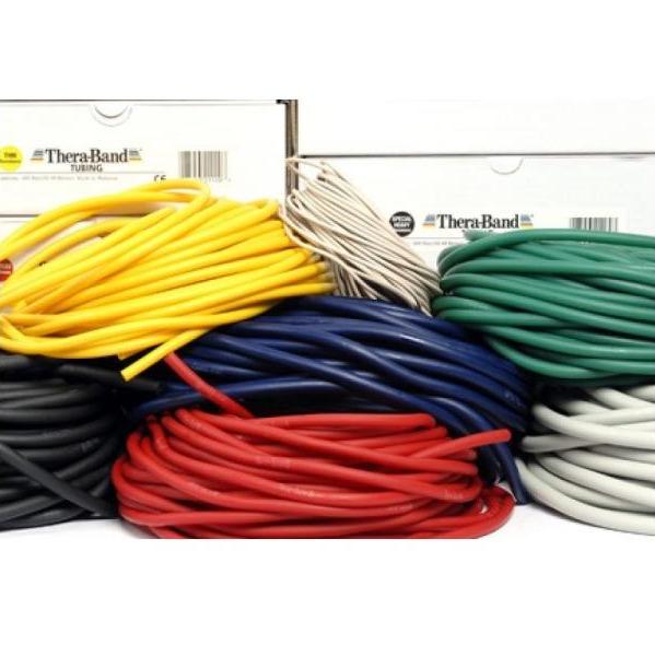 Rzemień lateksowy - tubing Thera-Band® dostępny jest w 7 oporach oznaczonych kolorami: od oporu słabego w kolorze beżowym do oporu super mocnego - w kolorze srebrnym. Wartości oporu zależą od sprężystości tubingu. Tubingi Thera Band® polecane są przede wszystkim do ćwiczeń w klubach fitness oraz podczas profesjonalnego treningu sportowego. Tubingi należy stosować z dodatkowymi akcesoriami Thera Band®.
