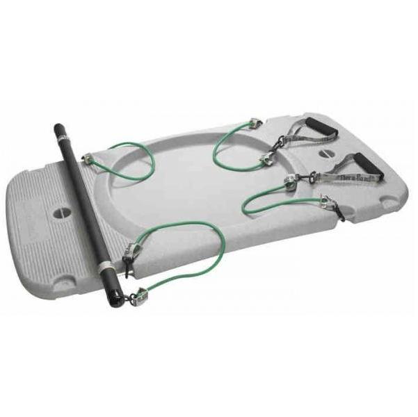 Stacja treningowa Thera Band® umożliwia wykonanie wielostronnych ćwiczeń zarówno w terapii, jak i fitness. Prosta w budowie, lekka alternatywa dla konwencjonalnych, dużych urządzeń treningowych. Ćwiczenia na stacji treningowej mają na celu zarówno przyrost siły mięśniowej zwiększenie zakresów ruchomości jak i polepszenie reakcji równoważnych. Możemy na niej umieszczać dodatkowe przybory do ćwiczeń (np.: duża piłka gimnastyczna, trener równowagi, Aero-step®) podczas wykonania kombinacji wielu ćwiczeń siłowych lub mających na celu poprawę zakresu ruchu.
