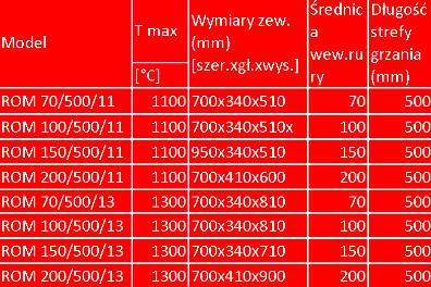Dane techniczne dostępnych modeli znajdują się na zdjęciu poglądowym w Galerii.