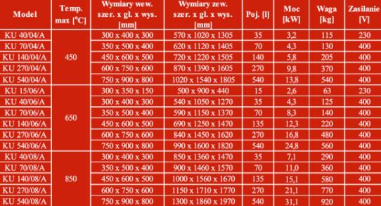 - W standardzie 2 tacki z blachy (KU 15/06/A bez tacek, dla modeli z temp 850°C tacki z blachy opcjonalnie).
