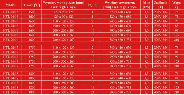 Wysokotemperaturowe piece komorowe z elementem grzejnym typu MoSi2: