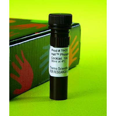 Fosforylacja i defosforylacja to molekularny przełącznik włączania / wyłączania, który reguluje szereg kluczowych szlaków biologicznych w komórce, w tym transdukcję sygnału, podział komórki i apoptozę. Koktajl inhibitora fosfatazy Halt chroni fosforylację białek w lizatach komórkowych i ekstraktach tkankowych.
