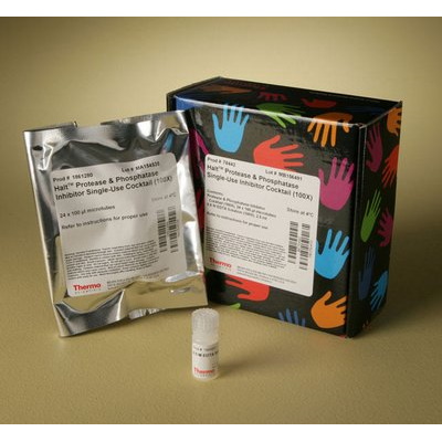 | Halt™ Protease and Phosphatase Inhibitor Single-Use Cocktail (100X), 24×100 µl, sufficient for 240 ml of sample | 2.400 µl | 78442. |