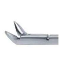 Kleszcze do laryngoskopii, trójkątne, zagięte ku górze pod kątem 45°.