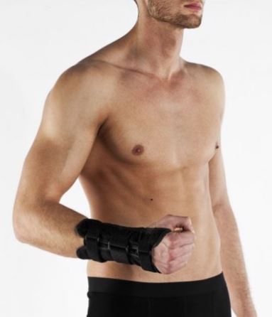 Stabilizator stawu nadgarstkowego wykonany z przewiewnego materiału z perforacją oraz zintegrowanej w ortezie lekkiej, aluminiowej szyny wzmacniającej i stabilizującej staw nadgarstkowy od strony dłoniowej. Wykorzystanie obwodowych taśm dociągowych zapewnia ścisłe przyleganie stabilizatora oraz pewne unieruchomienie. Stabilizator wykorzystywany w celach obniżenia obciążenia na kości nadgarstka, torebki stawowej oraz ścięgien.