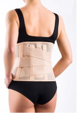 Gorset stabilizująco - unieruchamiający z pasami dociągowymi wykonany z elastycznej tkaniny kompresyjnej. Składa się z materiału zapinanego z przodu na rzep, giętkich fiszbin, aluminiowych stalek odciążających i stabilizujących kręgosłup, a także systemu pasów dociągających pozwalających na regulacje siły stabilizacji. Tkanina kompresyjna poprzez swoją przestrzenna strukturę pozwala na stały dostęp powietrza, a także odprowadzenie nadmiaru wilgoci. Jest przy tym trwała i wygodna w codziennym użytkowaniu. Wysokość ortezy 26cm odpowiednia dla stabilizacji odcinka lędźwiowego kręgosłupa. Stosowana w zespołach bólowych w celu miejscowej stabilizacji i odbarczenia, a także wzmocnienia podczas wykonywania pionizacji pacjenta z urazem ortopedycznym, bądź neurologicznym.