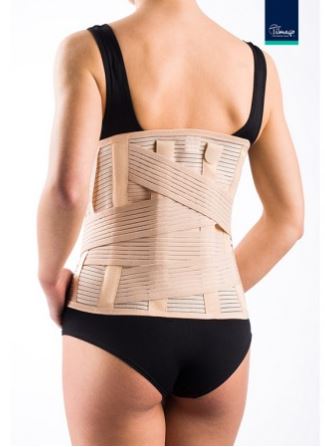 Wysoka orteza (gorset) piersiowo-lędźwiowo-krzyżowa wykonana z elastycznej tkaniny kompresyjnej. Składa się z materiału zapinanego z przodu na rzep, giętkich fiszbin, aluminiowych stalek odciążających i stabilizujących kręgosłup, a także systemy pasów dociągających pozwalających na regulację siły stabilizacji. Tkanina kompresyjna poprzez swoją przestrzenna strukturę pozwala na stały dostęp powietrza, a także odprowadzenie nadmiaru wilgoci. Jest przy tym trwała i wygodna w codziennym użytkowaniu. Wysokość ortezy 32 cm odpowiednia dla stabilizacji odcinka piersiowo-lędźwiowo-krzyżowego kręgosłupa. Stosowana w zespołach bólowych w celu miejscowej stabilizacji i odbarczenia, a także wzmocnienia podczas wykonywania pionizacji pacjenta z urazem ortopedycznym, bądź neurologicznym.