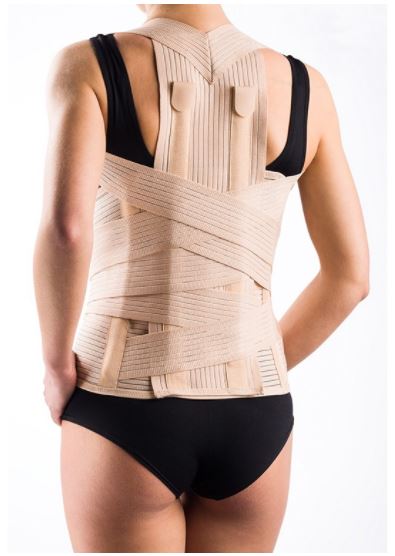 Wysoka orteza (gorset) piersiowo-lędźwiowo-krzyżowa regulowana wykonana z elastycznej tkaniny kompresyjnej. Składa się z materiału zapinanego z przodu na rzep, giętkich fiszbin, aluminiowych stalek odciążających kręgosłup, systemu pasów dociągających pozwalających na regulację siły stabilizacji oraz pasów stabilizujących łopatki. Tkanina przestrzenna umożliwia dostęp powietrza do skóry pacjenta, jest komfortowa i przyjazna w użytkowaniu. Wysokość odpowiednia dla stabilizacji piersiowego, lędźwiowego i krzyżowego odcinka kręgosłupa. Stosowana w zespołach bólowych w celu stabilizacji i odbarczenia.