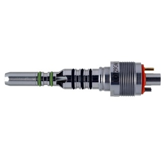 Szybkozłączka TKD wyposażona w innowacyjną diodę LED, która zmniejsza zakłócenia światła w odniesieniu do lampy głównej. Dioda LED pozwala nam uzyskać oświetlenie typu DAY-LIGHT w obszarze roboczym jamy ustnej pacjenta.