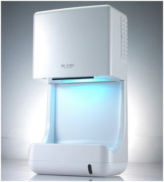 Suszarka do rąk. Bardzo mała głebokość (super slim design). Max. prędkość nawiewu: 140 m/s. Super płaska powierzchnia zapewniająca łatwe czyszczenie. Wykonana z nieplanego antybakteryjnego materiału. System antykradzieżowy. Zamek automatyczny.