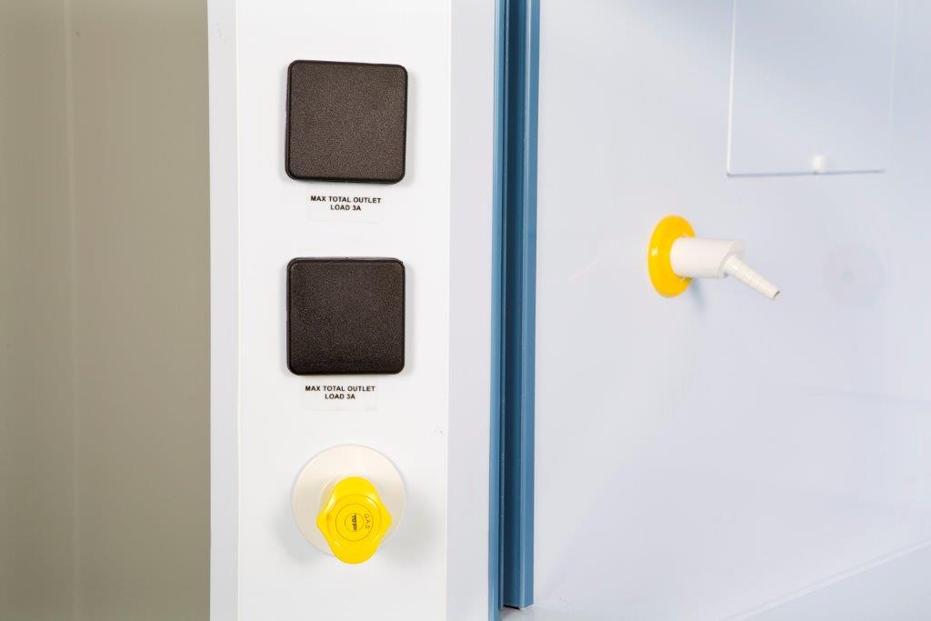 Urządzenie posiada także dodatkowy system małych wentylatorów wewnątrz komory z systemem natryskowym, który poprawia bezpieczeństwo oraz przepływ powietrza wewnątrz komory.