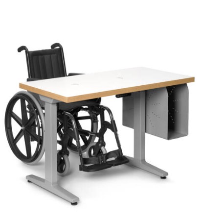 ATE-700 to stół okulistyczny przystosowany do pacjentów na wózkach inwalidzkich dzięki zastosowaniu dwóch oddzielnych kolumn wspierających