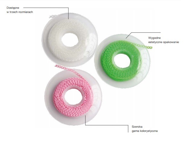 Wykonane z super-elastycznego, wytrzymałego materiału, który dostarcza kontynuującej, lekkiej siły. Odporne na wilgoć, odbarwienia i zapach. Cienkie ścianki łańcuszka ułatwiają zakładanie łańcuszka Wygodne estetyczne opakowanie Dostępne w trzech rozmiarach Szeroka gama kolorystyczna pod skrzydełka zamka.