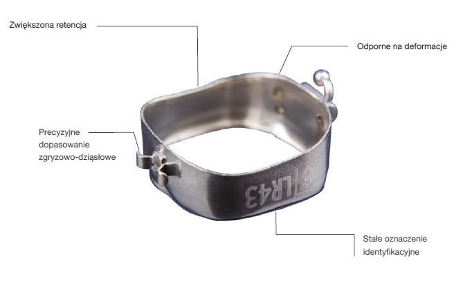 Wykonane z wysokiej jakości nierdzewnej stali. Posiadają dodatkowe zaczepy lutowane bezpośrednio do obręczy stosowne do każdej sytuacji klinicznej. Odpowiednie ukształtowanie zgryzowe oraz dziąsłowe zapewnia doskonałe dopasowanie oraz przeciwdziała wypłukiwaniu cementu, redukując jednocześnie podrażnienie tkanek. Każdy w pełni uzbrojony pierścień posiada wyprofilowaną bazę dla skuteczniejszego dopasowania się do anatomii zęba. Oznakowania rozmiaru na każdym z pierścieni ułatwiają identyfikację, natomiast mikrowytrawiona wewnętrzna powierzchnia ułatwia cementowanie oraz zwiększa siłę klejenia. Dodatkowe wzmocnienia na zewnętrznej krawędzi pierścieni zapobiegają deformacji. Pierścienie dostępne są na pierwsze i drugie zęby trzonowe od rozmiaru 30 do 44 ½ co pół rozmiaru.