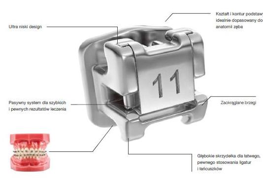 System pasywnych zamków samoligaturujących zaprojektowany z myślą o stałych siłach niskiego tarcia.