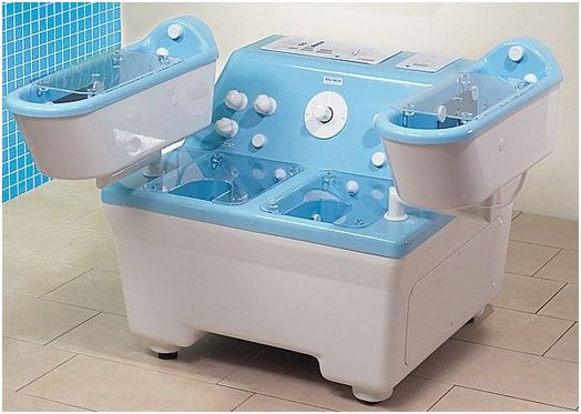Czterokomorowa wanna do kąpieli kończyn zmiennym strumieniem ciepłej i zimnej wody.