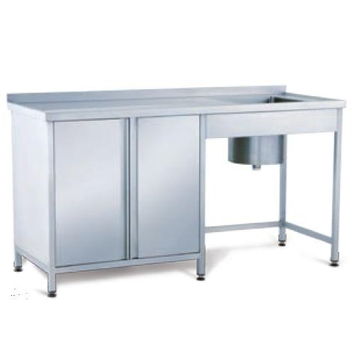 Stół do przygotowania opatrunków gipsowych z szafką. Komora odstojnika gipsu typowa o wymiarach 450×450×150 mm. Standardowo wyposażona w wyjmowany odstojnik gipsu z pokrywą oraz zawór odcinający z układem zasyfonowania. Blat zagłębiony z fartuchem ściennym tylnym.