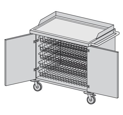 Meble modułowe wg normy DIN. Wózek systemowy ogólnozabiegowy z zamontowaną systemową prowadnicą ścienną z tworzywa ABS. Wyposażenie wózka: – kosz typ A-03 – 5 szt. L=835, B=500, H=100 mm.