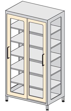 Szafa z drzwiami przesuwnymi oszklona ze stali nierdzewnej kwasoodpornej.