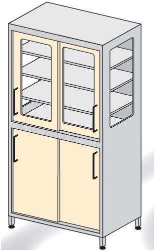 Szafa z drzwiami przesuwnymi oszklona górą ze stali nierdzewnej kwasoodpornej.