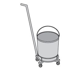 Wiadro mobilne z uchwytem do prowadzenia. Wyposażenie – wiadro wyjmowane; – koła o średnicy Ř50 mm. Długość rączki 750 mm.