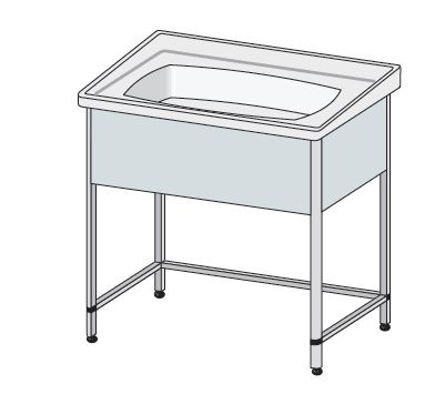 Stanowisko do pielęgnacji niemowląt – kąpielowe. Przeznaczenie: Stanowiska do pielęgnacji noworodków i niemowląt typ STP przeznaczone są do wykonywania wszystkich czynności, związanych z pielęgnacją dzieci na oddziałach położniczych, punktach pielęgnacyjnych, tradycyjnych salach noworodkowych oraz pokojach typu matka z dzieckiem. Charakterystyka: Elementy konstrukcyjne narożne z profili o zaokrąglonych krawędziach chroniących użytkownika przed urazami. Mocny i lekki szkielet tworzący konstrukcję mebla wypełniony laminowanymi płytami meblowymi, panelami z tworzywa, blachą lakierowaną lub nierdzewną, blat z wanienką wykonany z żywic szklano-poliestrowych. Wyposażenie standardowe stanowią: materacyk pokryty PCV, szuflady, kosze i kuwety wysuwne na materiały i środki pielęgnacyjne, syfon wodno-kanalizacyjny. W opcji doposażenie w baterię kąpielową termostatyczną. W zależności od potrzeb każde ze stanowisk może być dodatkowo wyposażone w ogrzewacz noworodków.