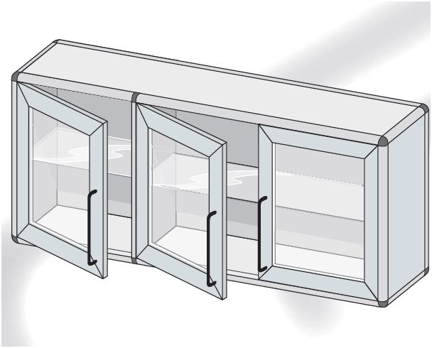 Szafka wisząca przeszklona. Standardowo wyposażone w jedną przestawną regulowaną półkę. W opcji zamki patentowe jedno- lub wielopunktowe typu baskwil.