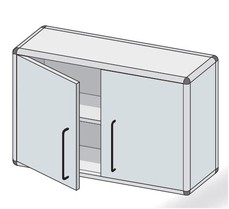Szafka wisząca. Standardowo wyposażone w jedną przestawną regulowaną półkę. W opcji zamki patentowe jedno- lub wielopunktowe typu baskwil.