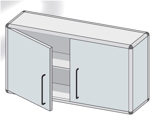 Szafka wisząca. Standardowo wyposażone w jedną przestawną regulowaną półkę. W opcji zamki patentowe jedno- lub wielopunktowe typu baskwil.