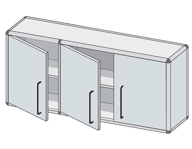 Szafka wisząca. Standardowo wyposażone w jedną przestawną regulowaną półkę. W opcji zamki patentowe jedno- lub wielopunktowe typu baskwil.