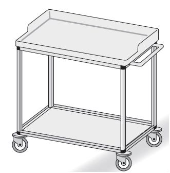 Stolik opatrunkowo-zabiegowy. Stoliki zabiegowe są wykonane w różnych konfiguracjach wymiarowych i rodzajowych. Standardowo wyposażone w zespoły jezdne z blokadą ruchu i obrotu oraz z odbojami zabezpieczającymi stolik i elementy otoczenia przed uszkodzeniem. Blaty robocze z tworzywa ABS standardowo wykonane jak pokazano na poniższych schematach z krawędzią boczną podniesioną lub bez krawędzi bocznych. Na życzenie Zamawiającego blaty mogą być wykonane z innych materiałów.