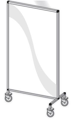 Parawan przejezdny. 1. wypełnienie z tworzywa mlecznego, światłoprzepuszczalnego, 2. koła o średnicy Ř50 mm z blokadą ruchu i obrotu.