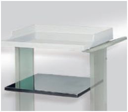 Półka robocza dolna. Z blachy kwasoodpornej polerowanej. Wymiary (szer. × gł.) 540×565 mm.