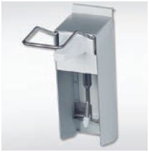 Dozownik do środków dezynfekcyjnych. Zawieszany na stelażu nr kat. W 242, lub szynie sprzętowej nr kat. W 202. Dostawa nie obejmuje płynu myjąco-dezynfekcyjnego.
