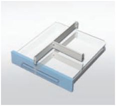Wkład do szuflady niskiej. Metalowy lakierowany techniką proszkową w kolorze białym. Konstrukcja umożliwia samodzielny montaż i demontaż oraz zmianę podziału szuflady jak W 231.