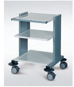 Z uwagi na różnorodne gabaryty stosowanych urządzeń medycznych, w proponowanej serii wózków do aparatury medycznej wyróżniamy dwie podstawowe długości półek L=640 mm oraz L=540 mm, co zobrazowane jest w oznaczeniu typu wózka. W wykonaniu standardowym: – regulacja wysokości półek środkowych w górę/dół co 30 mm w zakresie ±60 mm od pozycji zwymiarowanej na rysunku technicznym – zamek patentowy szuflady. Wymiary gabarytowe półki [mm]:565×540. Wymiary użytkowe półki [mm]: 495×470.