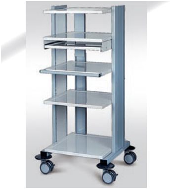 Z uwagi na różnorodne gabaryty stosowanych urządzeń medycznych, w proponowanej serii wózków do aparatury medycznej wyróżniamy dwie podstawowe długości półek L=640 mm oraz L=540 mm, co zobrazowane jest w oznaczeniu typu wózka. w wykonaniu standardowym: – regulacja wysokości półek środkowych w górę/dół co 30 mm w zakresie ±60 mm od pozycji zwymiarowanej na rysunku technicznym; – wysuwana półka do klawiatury komputerowej nr kat. W 131; – zamek patentowy szuflady; – kanał kablowy z rozgałęziaczem elektrycznym 4-gniazdowym nr kat. W 121. Wymiary gabarytowe półki [mm]:górna/dolna: 565×540; środkowe: 525×540. Wymiary użytkowe półki [mm]: górna/dolna: 495×470; środkowe: 455×470.