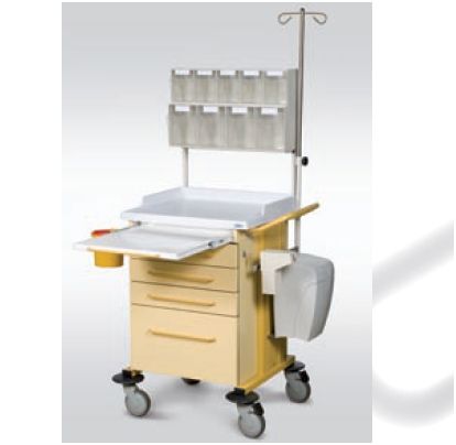 Wózek opatrunkowo-zabiegowy. Model podstawowy WK 70 doposażony: • dwie szyny sprzętowe na akcesoria nr kat. W 202; • wieszak na płyny infuzyjne nr kat. W 212; • kosz z systemem otwierania kolanowego nr kat. W 227; • uchwyt z pojemnikiem na zużyte igły nr kat. W 225; • zestaw dozowników na materiały opatrunkowo-zabiegowe nr kat. W 262; • uchwyt z pojemnikiem na zużyte igły nr kat. W 225; • otwieracz do ampułek nr kat. W 228; • wkłady szufladowe: – 2 × niski nr kat. W 271; – 1 × niski nr kat. W 273; – 1 × wysoki nr kat. W 276. Wózki funkcyjne z proponowanej serii „TRIBO-MED” przeznaczone są do codziennych potrzeb placówek medycznych jako specjalistyczne wózki pielęgniarskie, opatrunkowe, zabiegowe, anestezjologiczne, reanimacyjne, endoskopowe i inne, ogólnego przeznaczenia. Szeroki asortyment elementów wyposażenia specjalistycznego pozwala na dostosowanie funkcji wózka do własnych potrzeb i decyduje o jego dużej przydatności na każdym oddziale szpitalnym.