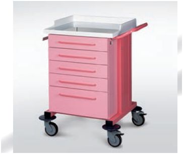 Wózek opatrunkowy. Model podstawowy WK 70 doposażony: • szyna sprzętowa na akcesoria nr kat. W 202; • stelaż z pokrywą do worka na odpady nr kat. W 224; • wkłady szufladowe: – 3 × niski nr kat. W 271; – 1 × niski nr kat. W 272; – 1 × średni nr kat. W 275. Wózki funkcyjne z proponowanej serii „TRIBO-MED” przeznaczone są do codziennych potrzeb placówek medycznych jako specjalistyczne wózki pielęgniarskie, opatrunkowe, zabiegowe, anestezjologiczne, reanimacyjne, endoskopowe i inne, ogólnego przeznaczenia. Szeroki asortyment elementów wyposażenia specjalistycznego pozwala na dostosowanie funkcji wózka do własnych potrzeb i decyduje o jego dużej przydatności na każdym oddziale szpitalnym.